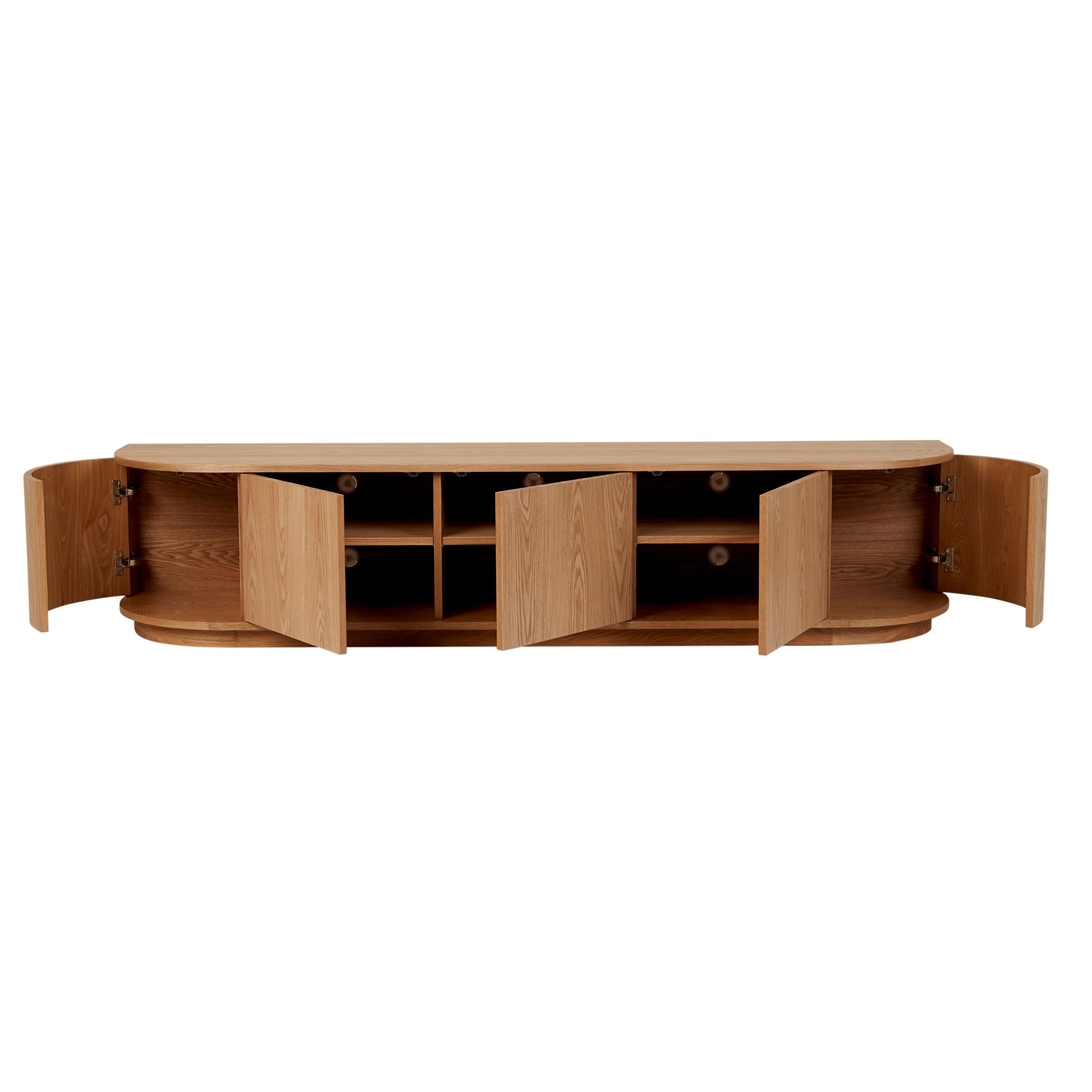 With beautifully rounded corners, the Oberon Crescent Entertainment unit is a sophisticated choice for your living space. It has ample interior space and a clean, crisp look with a choice of three colours. A sophisticated choice for your living room.